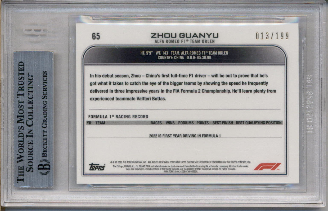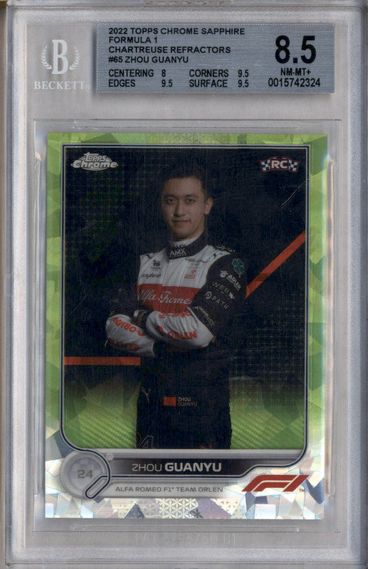2022 Topps Chrome Sapphire Formula 1 Chartreuse Zhou Guanyu RC /199 BGS 8.5