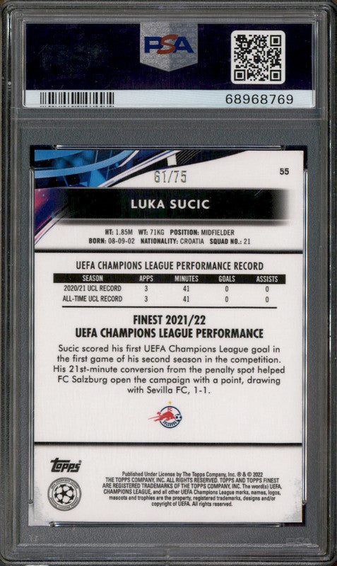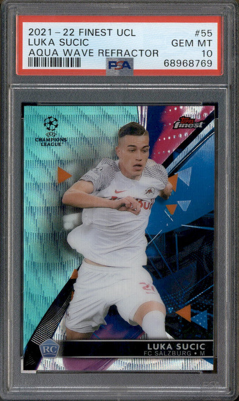 2021-22 Finest UCL Aqua Wave Refractor #55 Luka Sucic RC /75 PSA 10