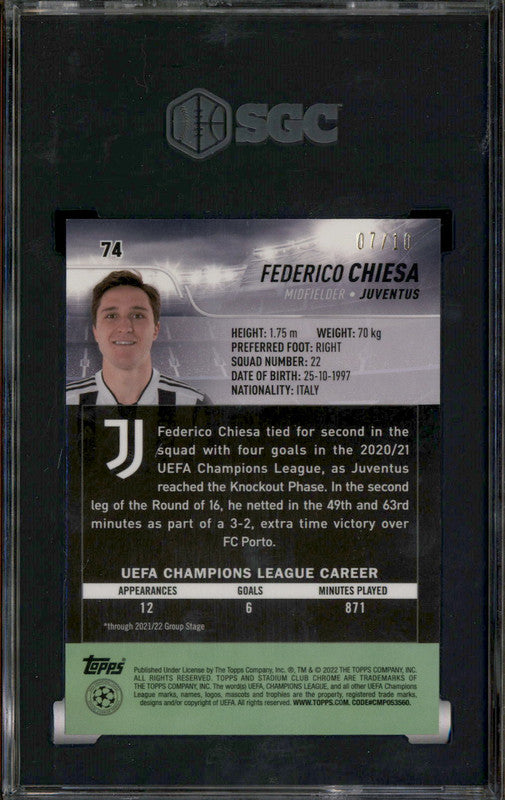 2021 Stadium Club Chrome Orange Blue Electric Charge Federico Chiesa /10 SGC 10