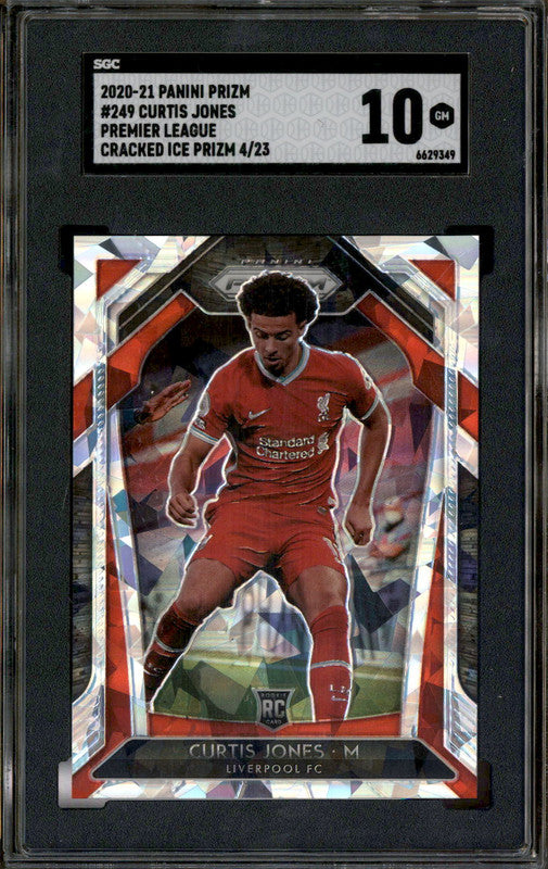 2020 Panini Prizm Premier League Cracked Ice Curtis Jones RC /23 SGC 10