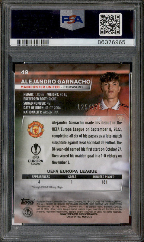 2022 Stadium Club Chrome Aqua Green Electric Alejandro Garnacho RC /225 PSA 10