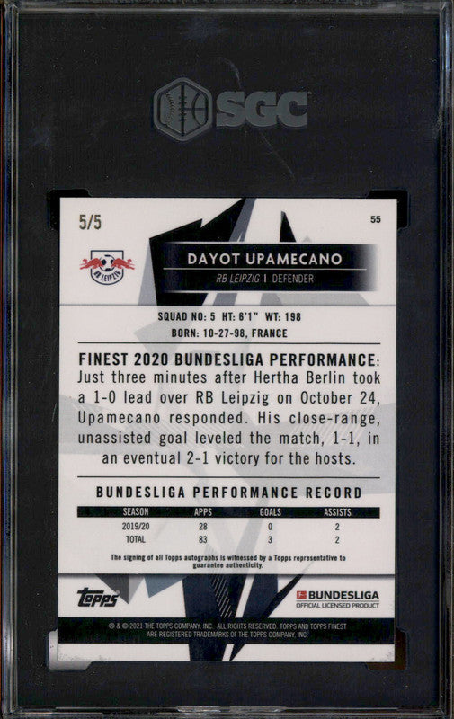 2020 Topps Finest Bundesliga Autograph Red Dayot Upamecano Auto /5 SGC 10