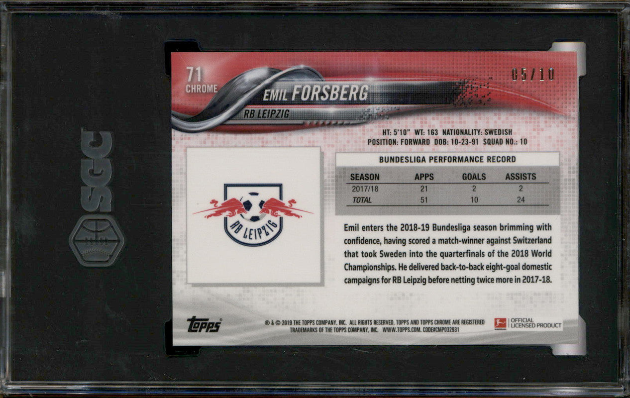 2018-19 Topps Chrome Bundesliga Red Refractor #71 Emil Forsberg /10 SGC 9.5