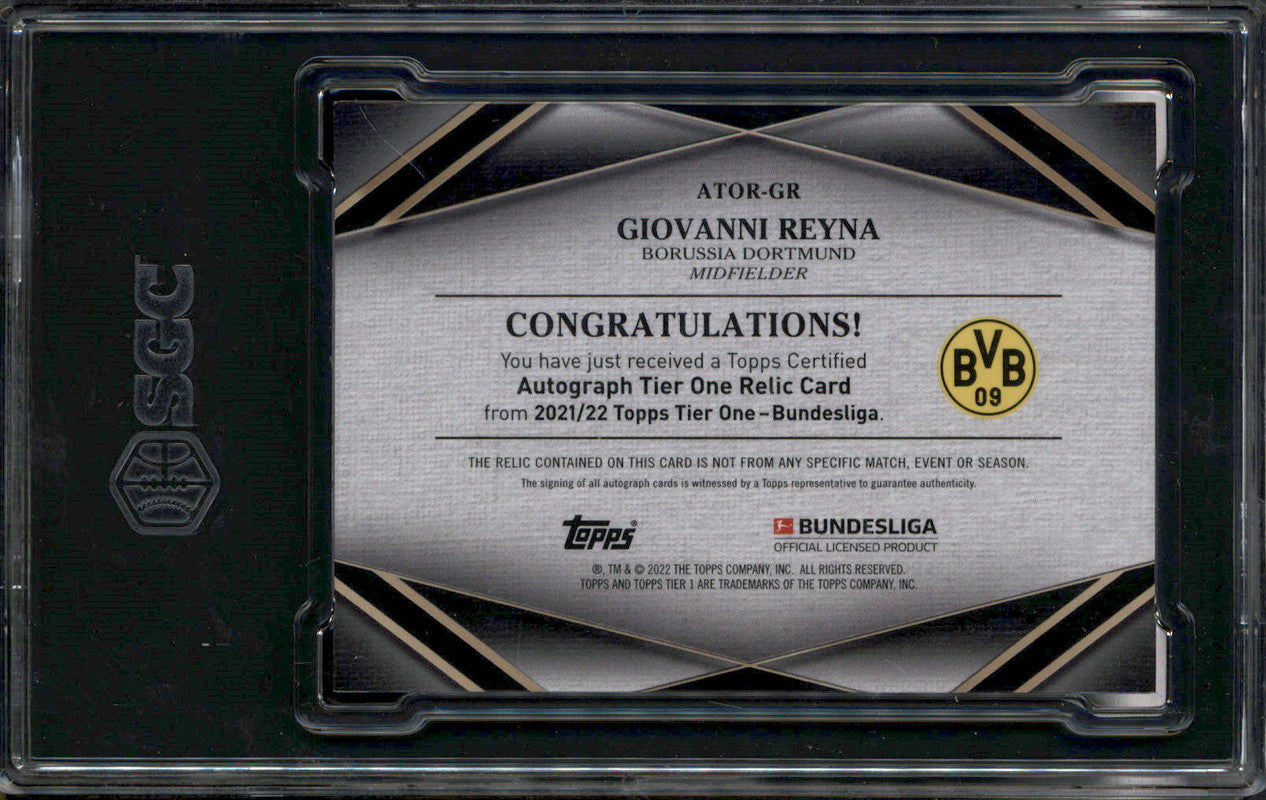 2021 Topps Tier One Bundesliga Autograph Relic Giovanni Reyna Auto /10 SGC 9.5