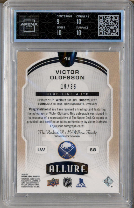 2020 Upper Deck Allure Auto Blue Link Victor Olofsson /35 Arena Club 9.5