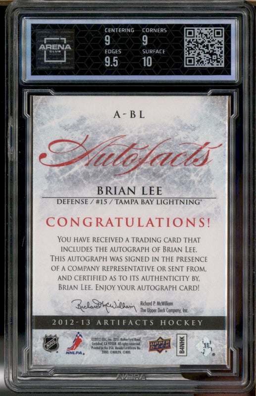 2012 UD Artifacts Auto Facts Autograph Brian Lee Arena Club 9.5