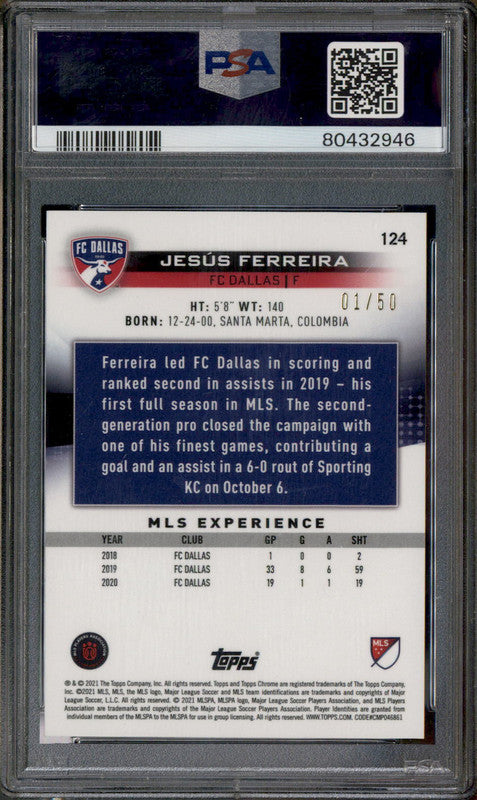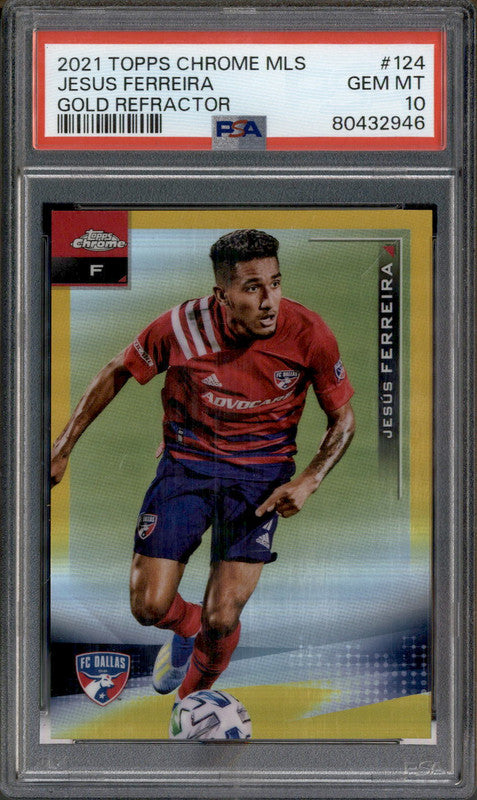 2021 Topps Chrome MLS Gold Refractor #124 Jesus Ferreira /50 PSA 10