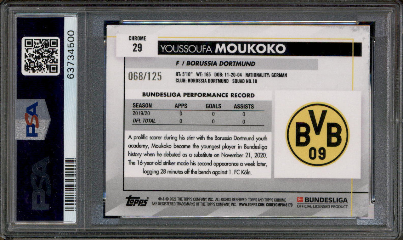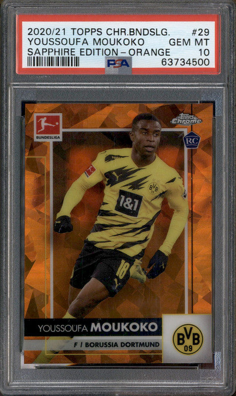 2020 Topps Chrome Bundesliga Sapphire Orange Youssoufa Moukoko RC /125 PSA 10