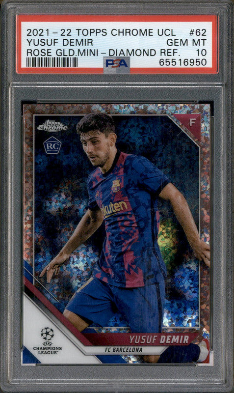 2021 Topps Chrome UCL Rose Gold Mini Diamond #62 Yusuf Demir /125 PSA 10