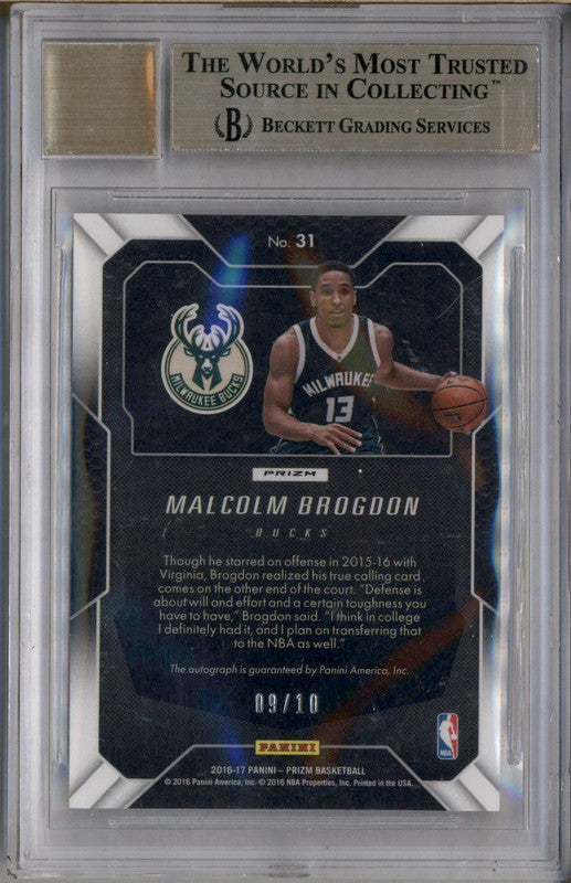 2016-17 Panini Prizm Rookie Autograph Hyper Malcolm Brogdon RC Auto /10 BGS 10