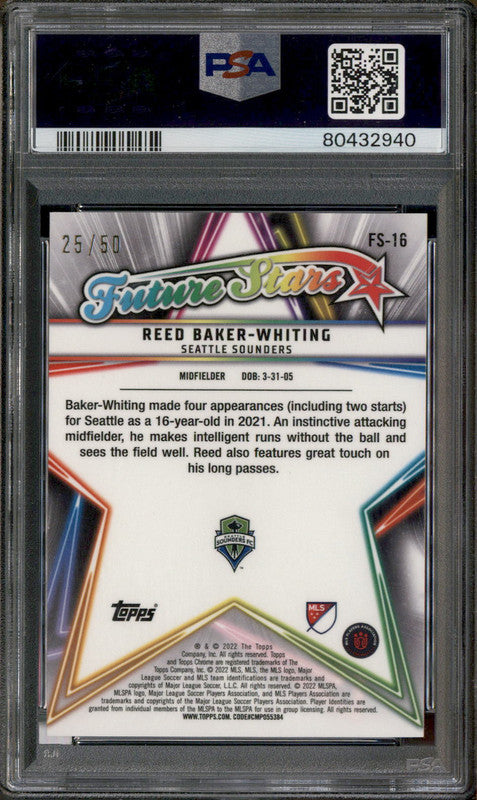 2022 Topps Chrome MLS Future Stars Gold Refractor Reed Baker-Whiting RC /50 PSA 10