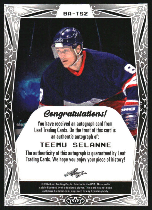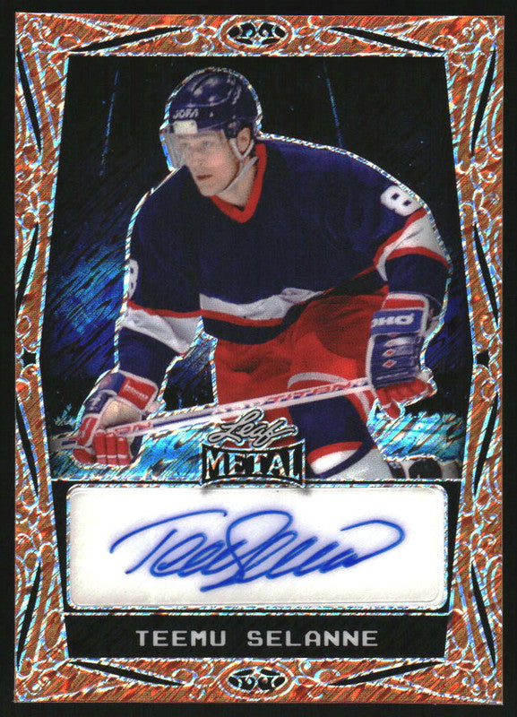 2024 Leaf Metal Hockey Legends Diagonal Shimmer Orange Teemu Selanne Auto /6
