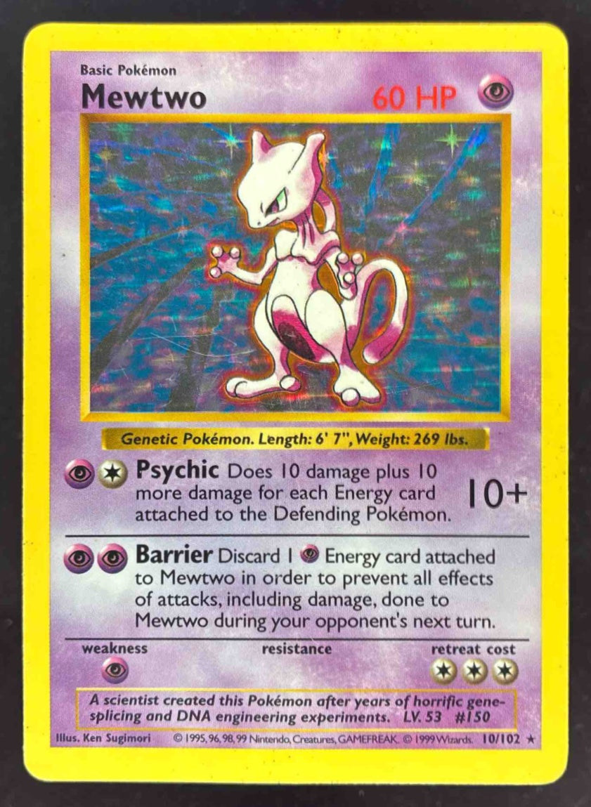 1999 Pokemon Set Shadowless #10/102 Mewtwo Holo *MP
