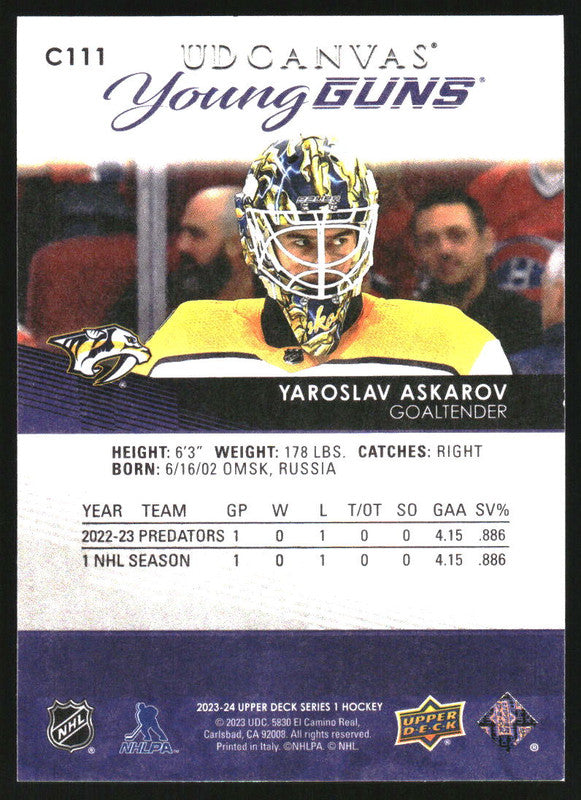 2023-24 Upper Deck UD Canvas #C111 Yaroslav Askarov Young Guns RC