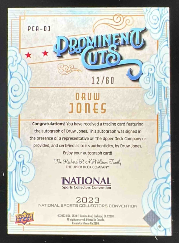 2023 UD National Convention Wrapper Redemption Prominent Cut Druw Jones Auto /60