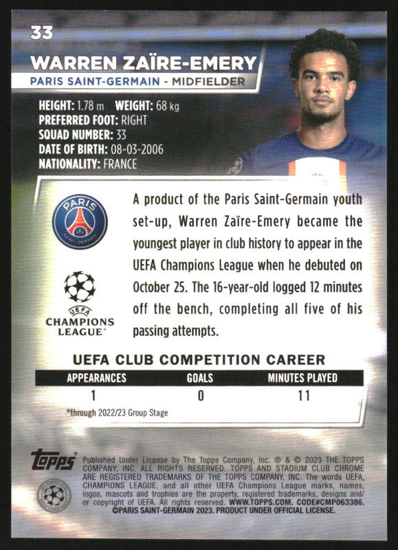2022-23 Stadium Club Chrome Members Only Image Variations Warren Zaire-Emery RC