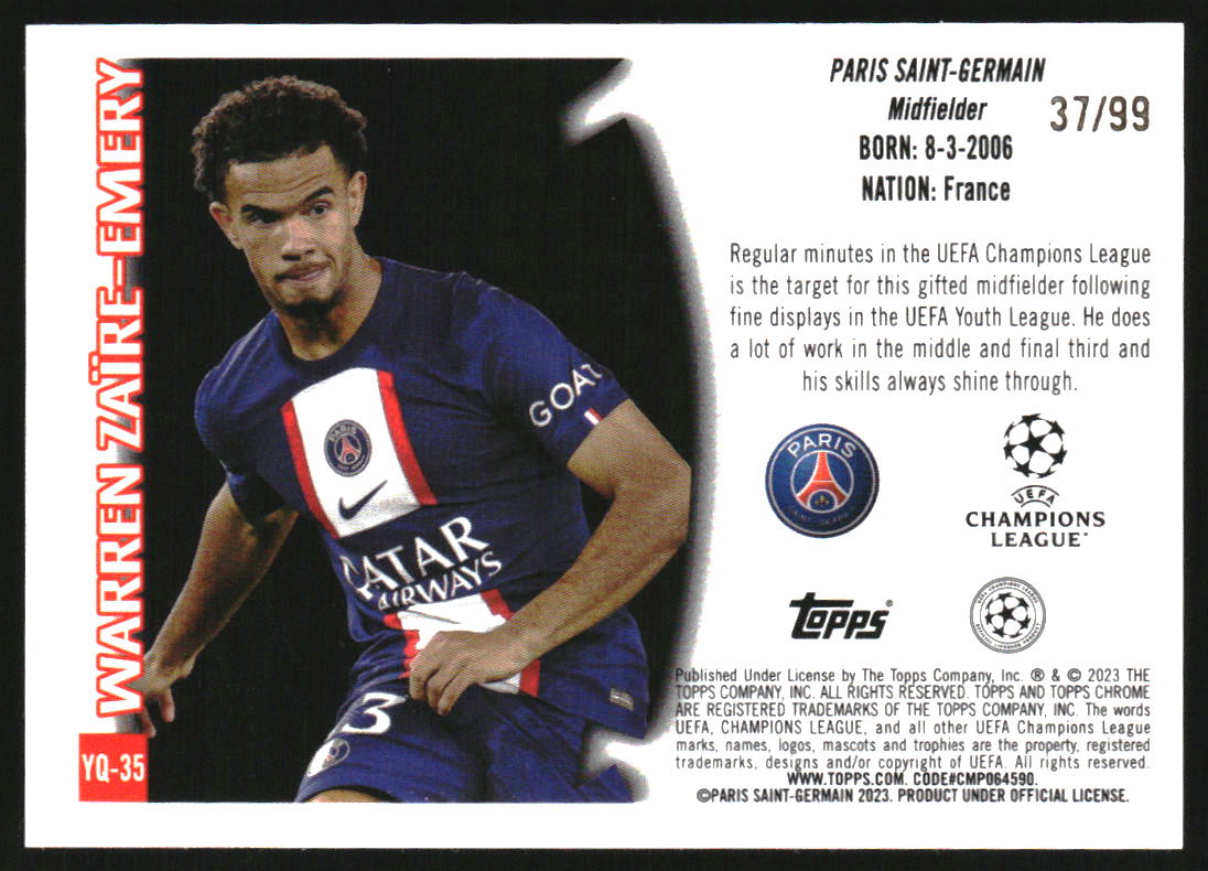 2022-23 Topps Chrome UEFA Club Youthquake Green Warren Zaire-Emery RC /99