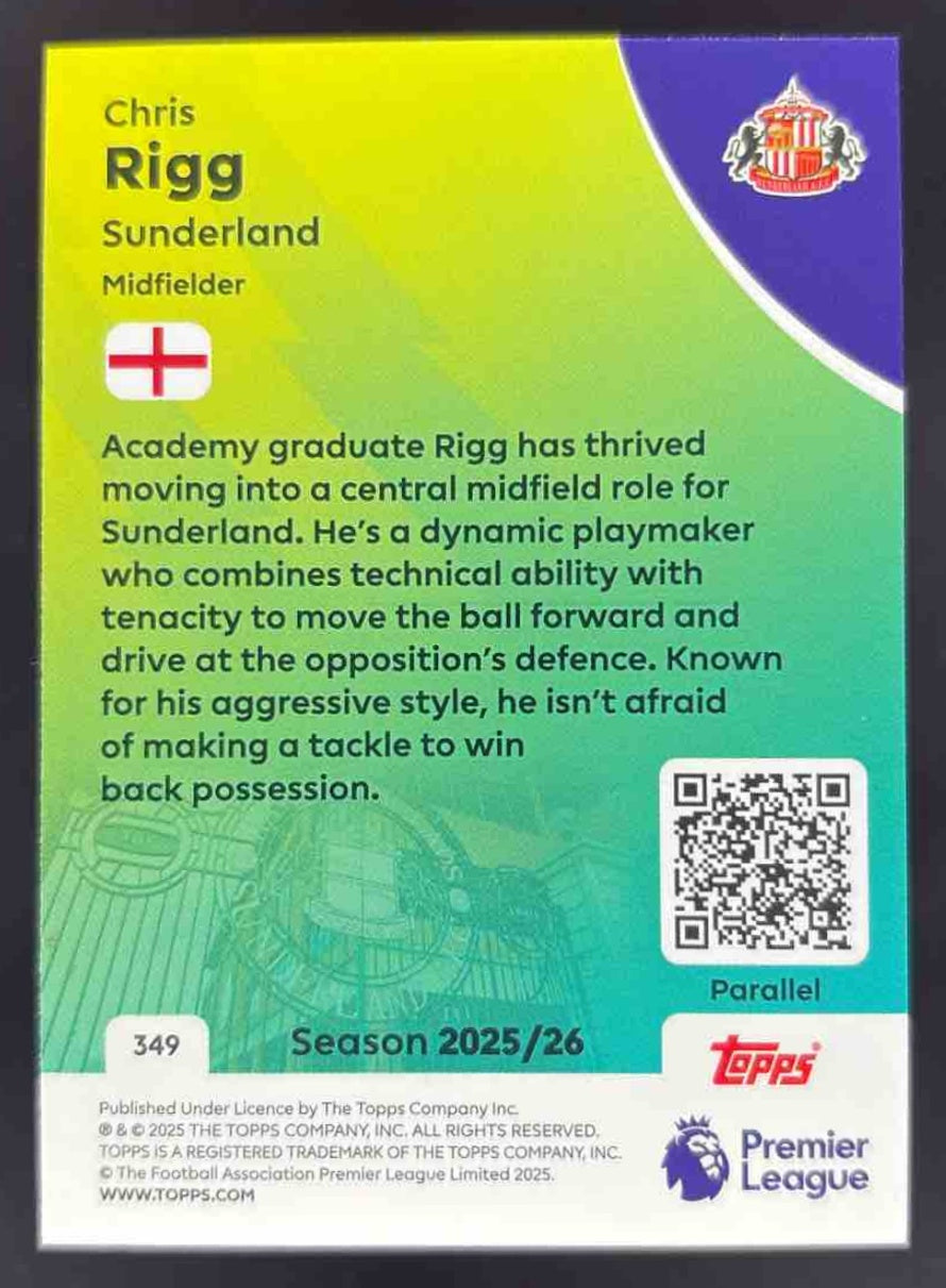2025-26 Topps Premier League Gold Rainbow Foil #349 Chris Rigg RC /50