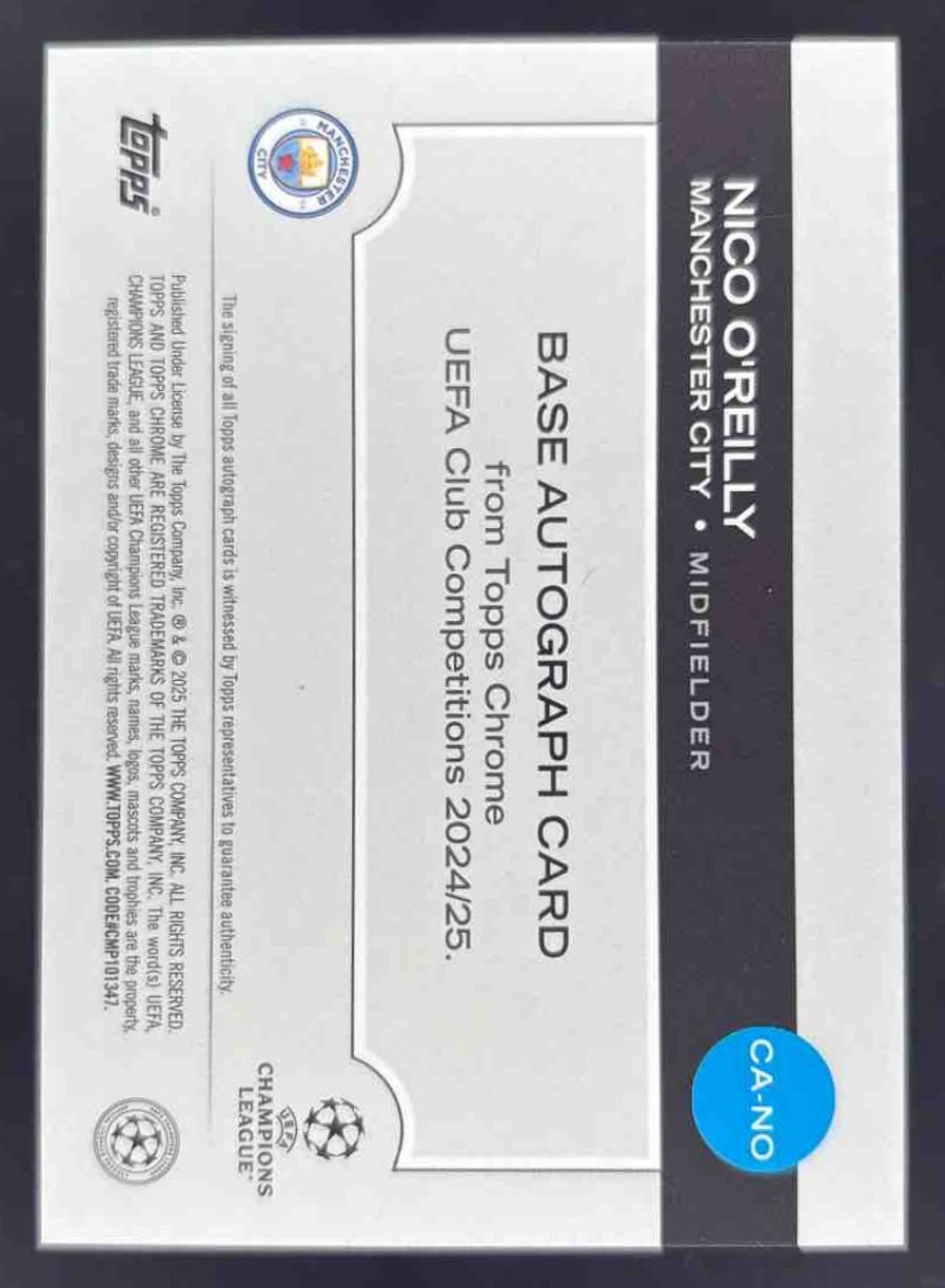 2024-25 Topps Chrome UEFA Gold Geometric Refractor #CA-NO Nico O'Reilly Auto /50