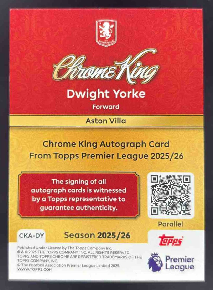 2025-26 Topps Premier League Chrome King Autographs #CKA-DY Dwight Yorke Auto