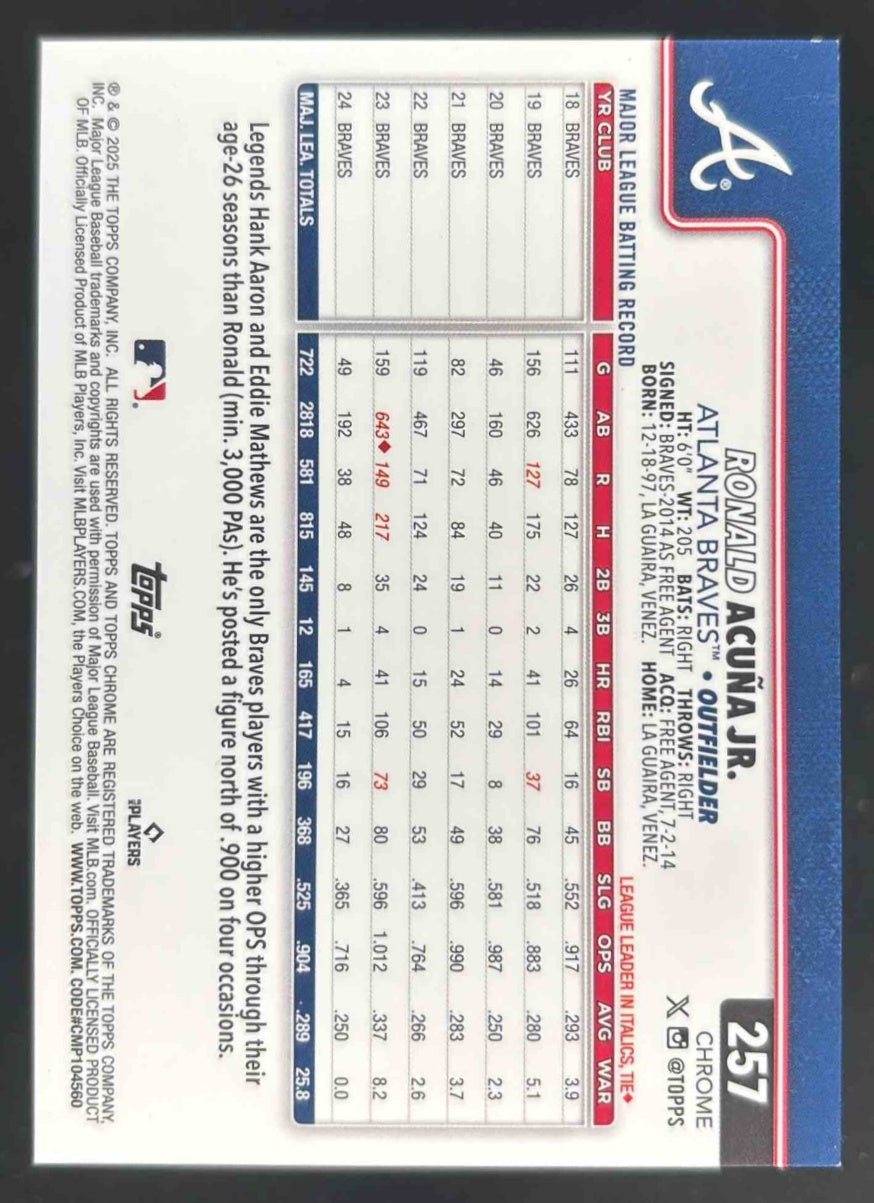 2025 Topps Chrome Image Variation Green Speckle Refractor Ronald Acuna Jr. /99