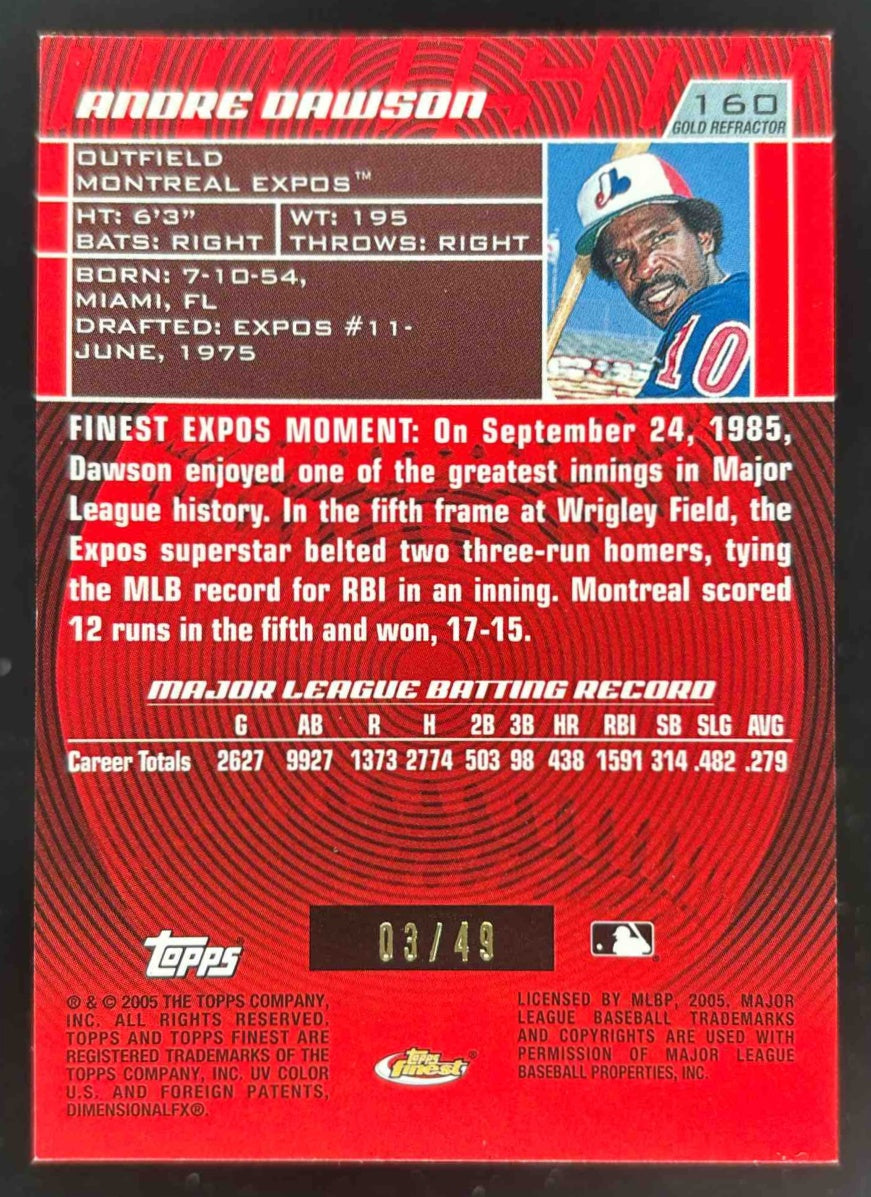 2005 Topps Finest Refractors Gold #160 Andre Dawson /49
