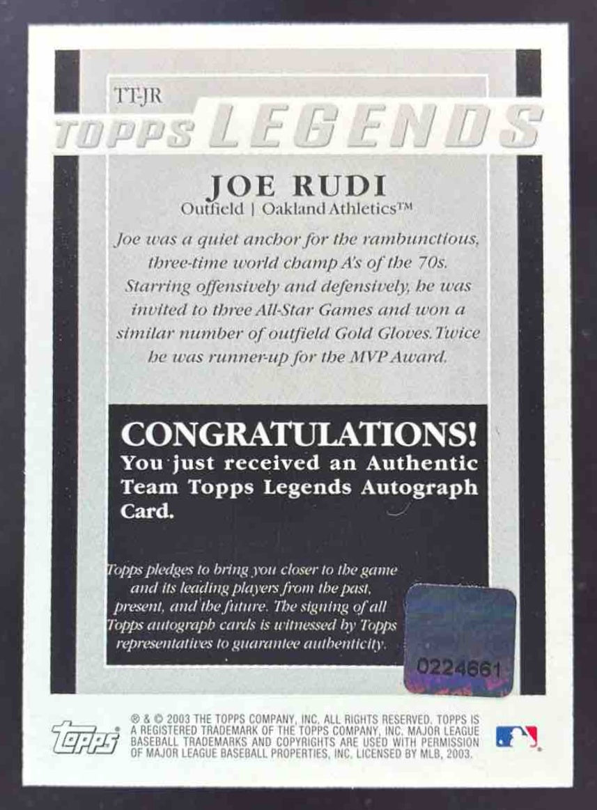 2004 Topps Team Topps Legends Autographs #TT-JR Joe Rudi Autograph Auto