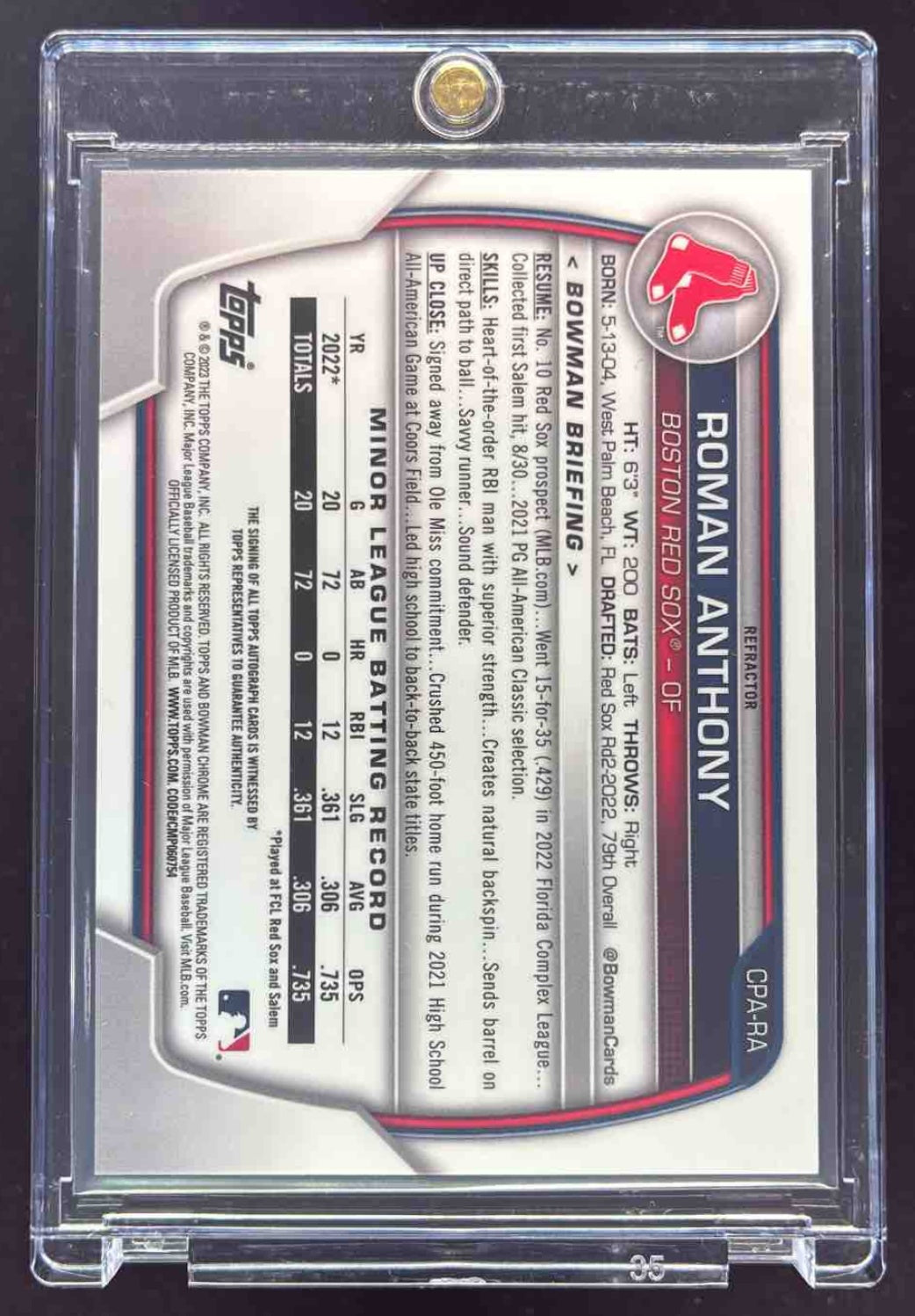 2023 Bowman Chrome Autographs Refractor #CPA-RA Roman Anthony RC Auto /499