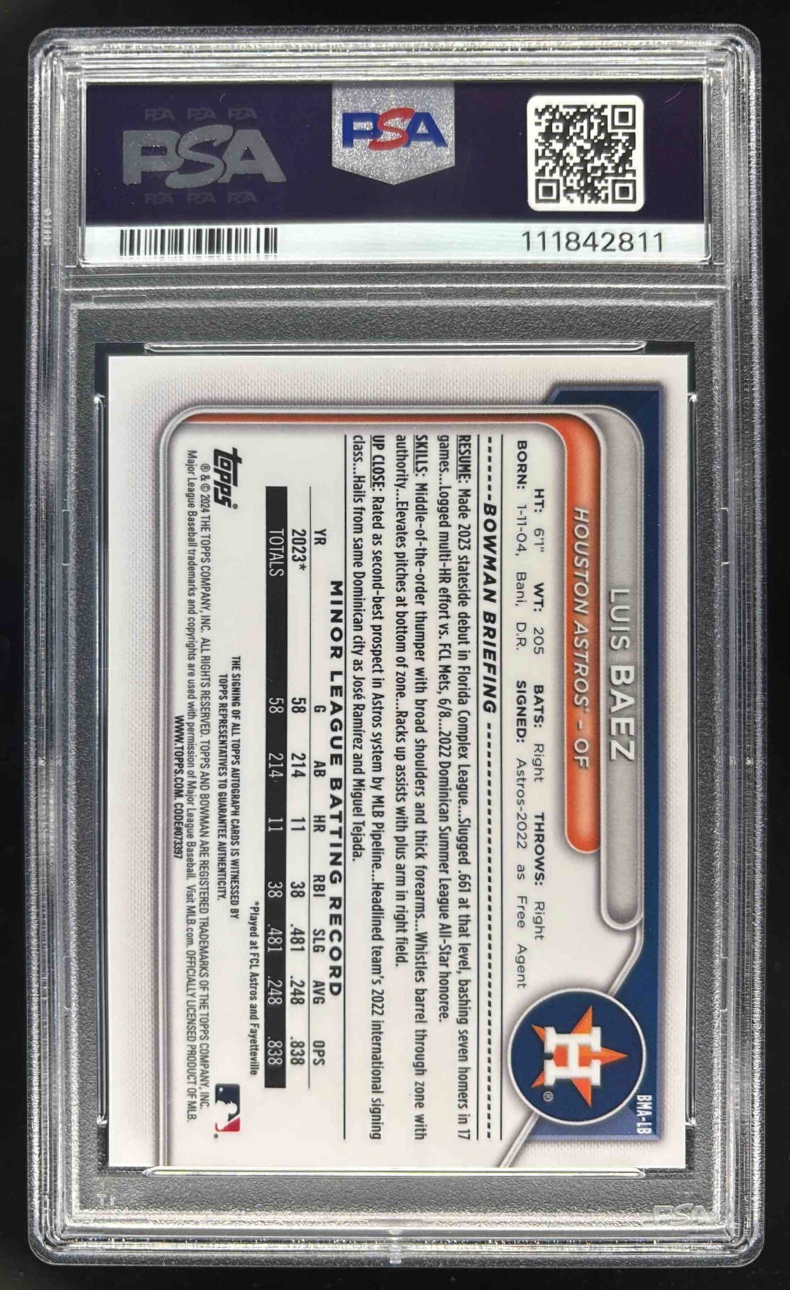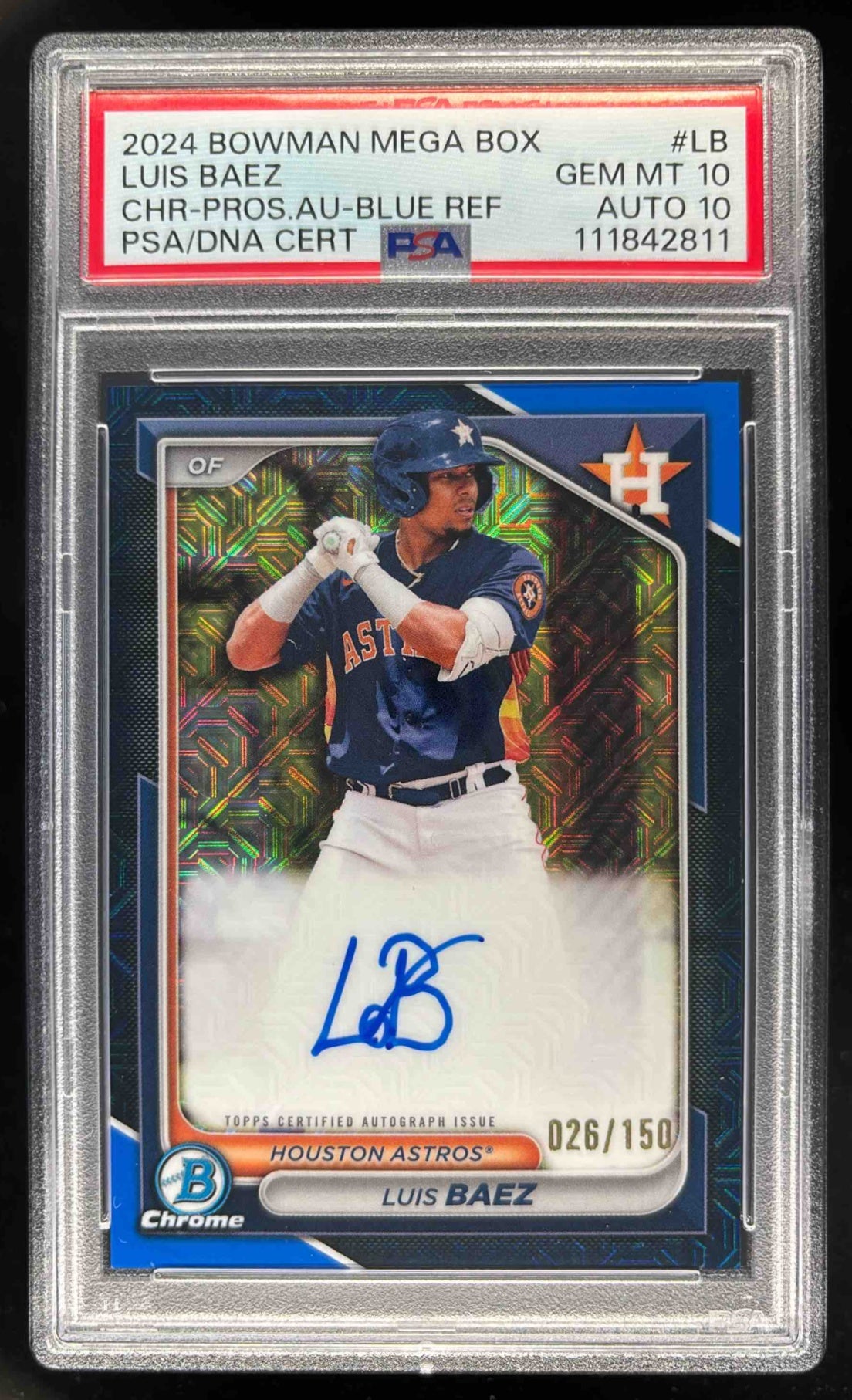 2024 Bowman Mega Box Autograph Mojo Blue Refractor Luis Baez Auto /150 PSA 10