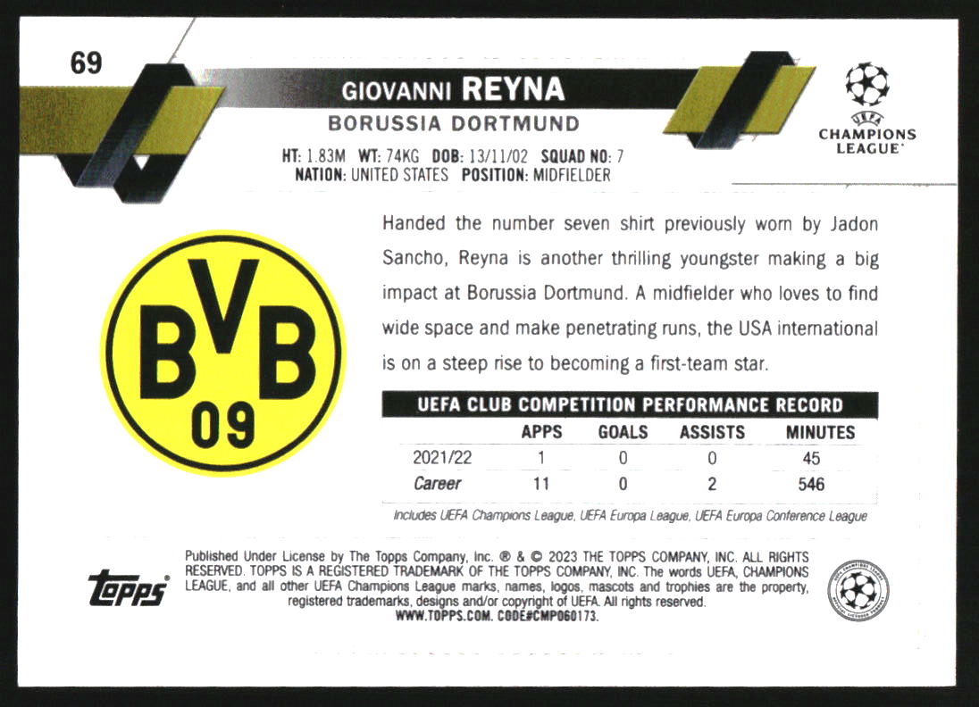 2022-23 Topps Chrome Red Gold Seismic #69 Giovanni Reyna