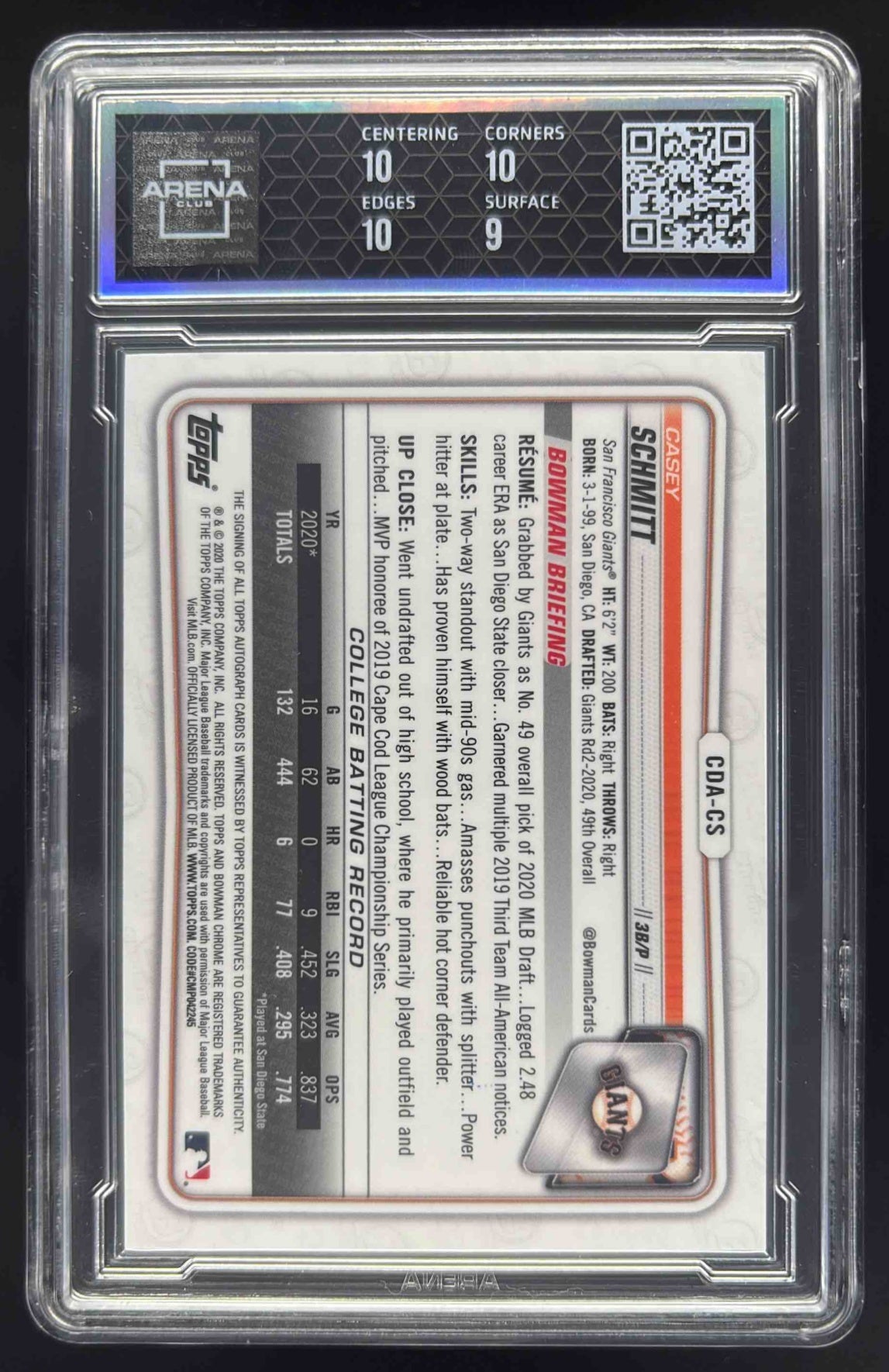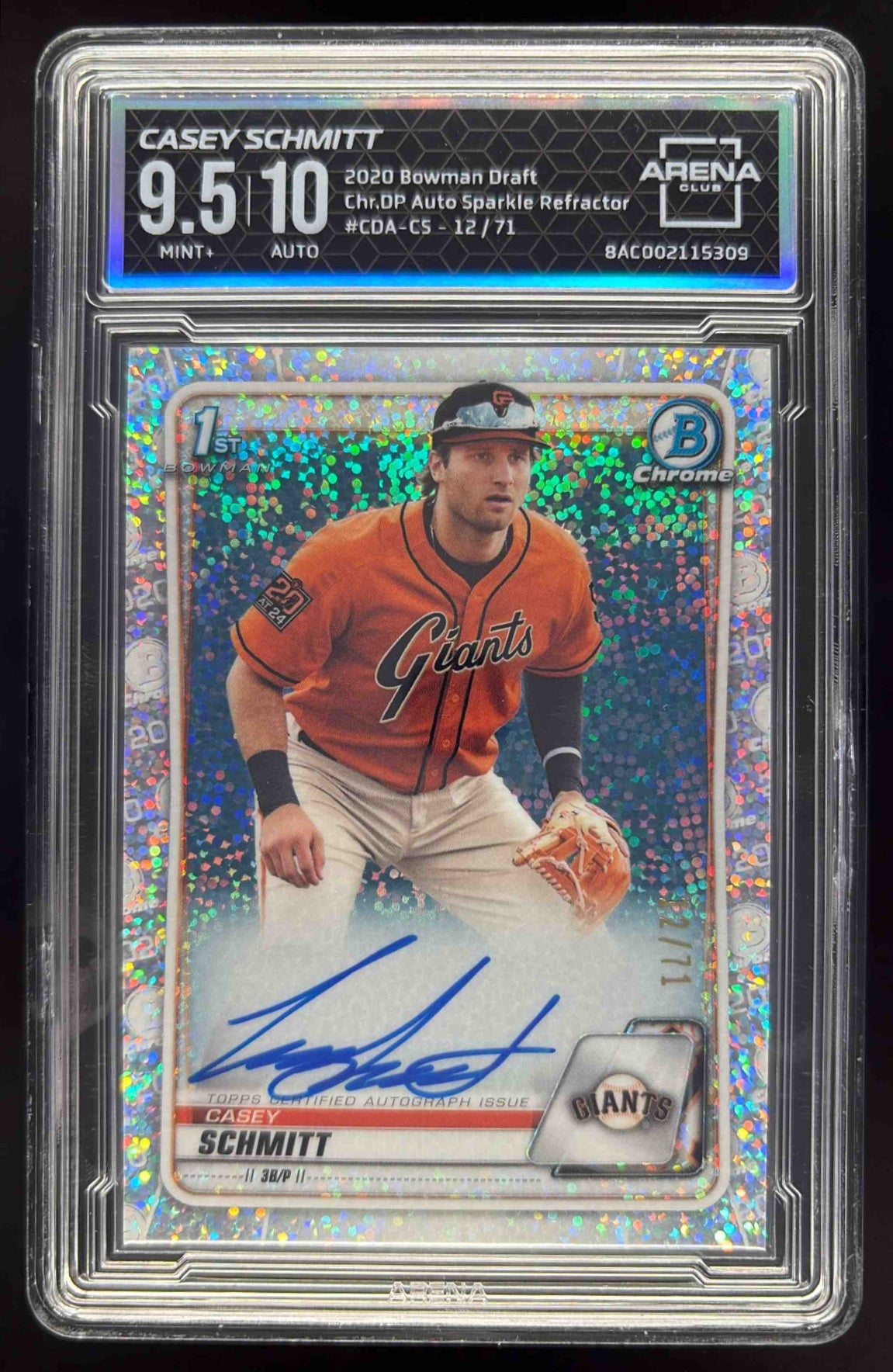 2020 Bowman Draft Chrome Sparkle Refractor Casey Schmitt Auto /71 Arena Club 9.5