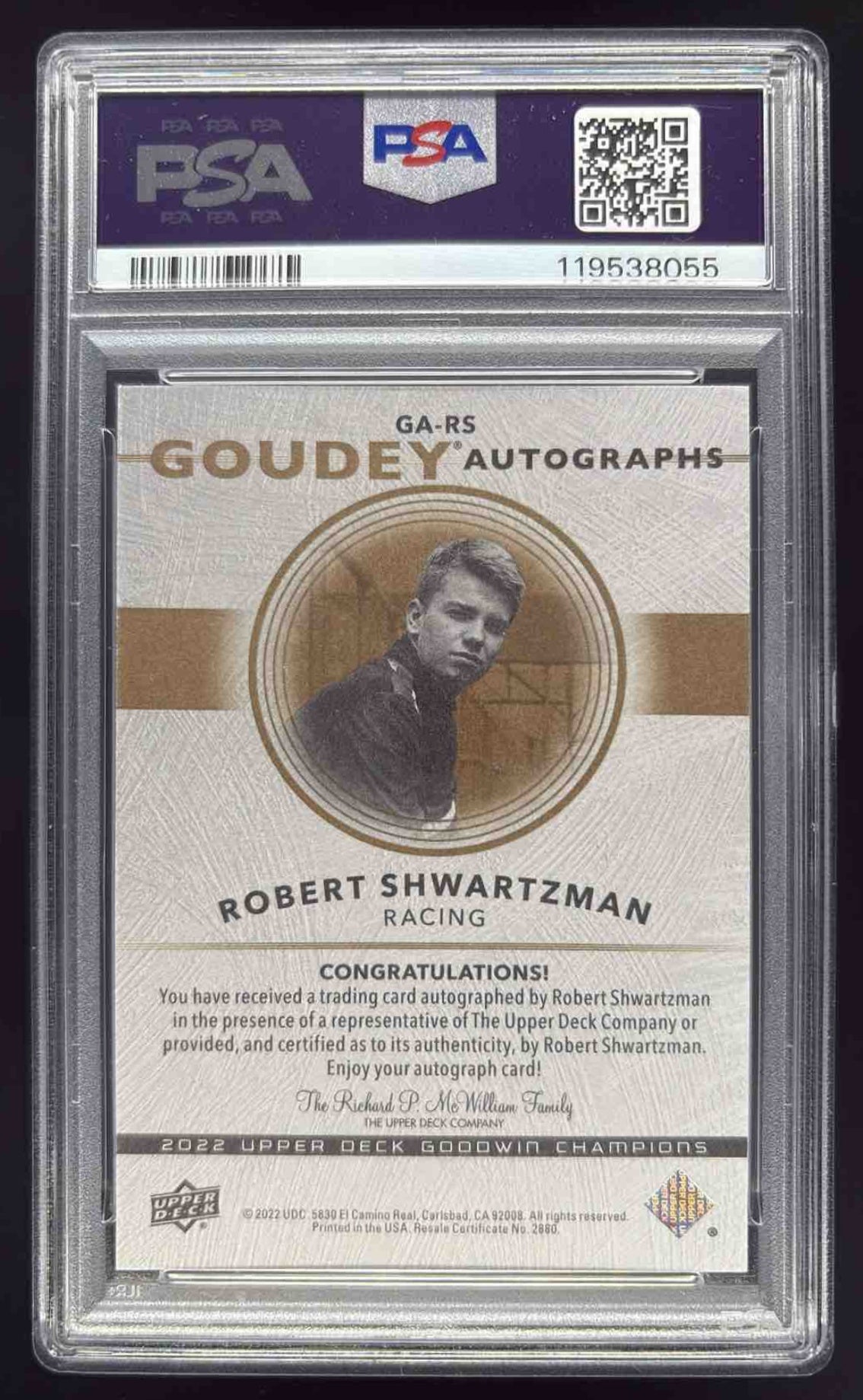 2022 Upper Deck Goodwin Champions Goudey #GA-RS Robert Shwartzman Auto PSA 10