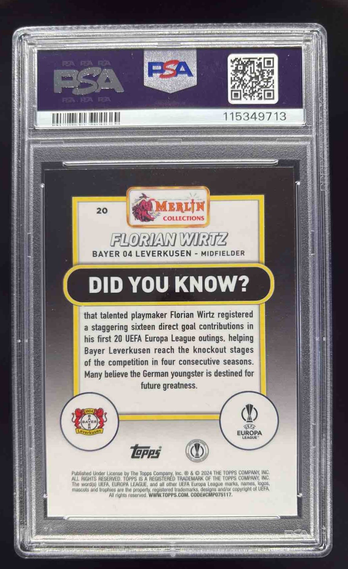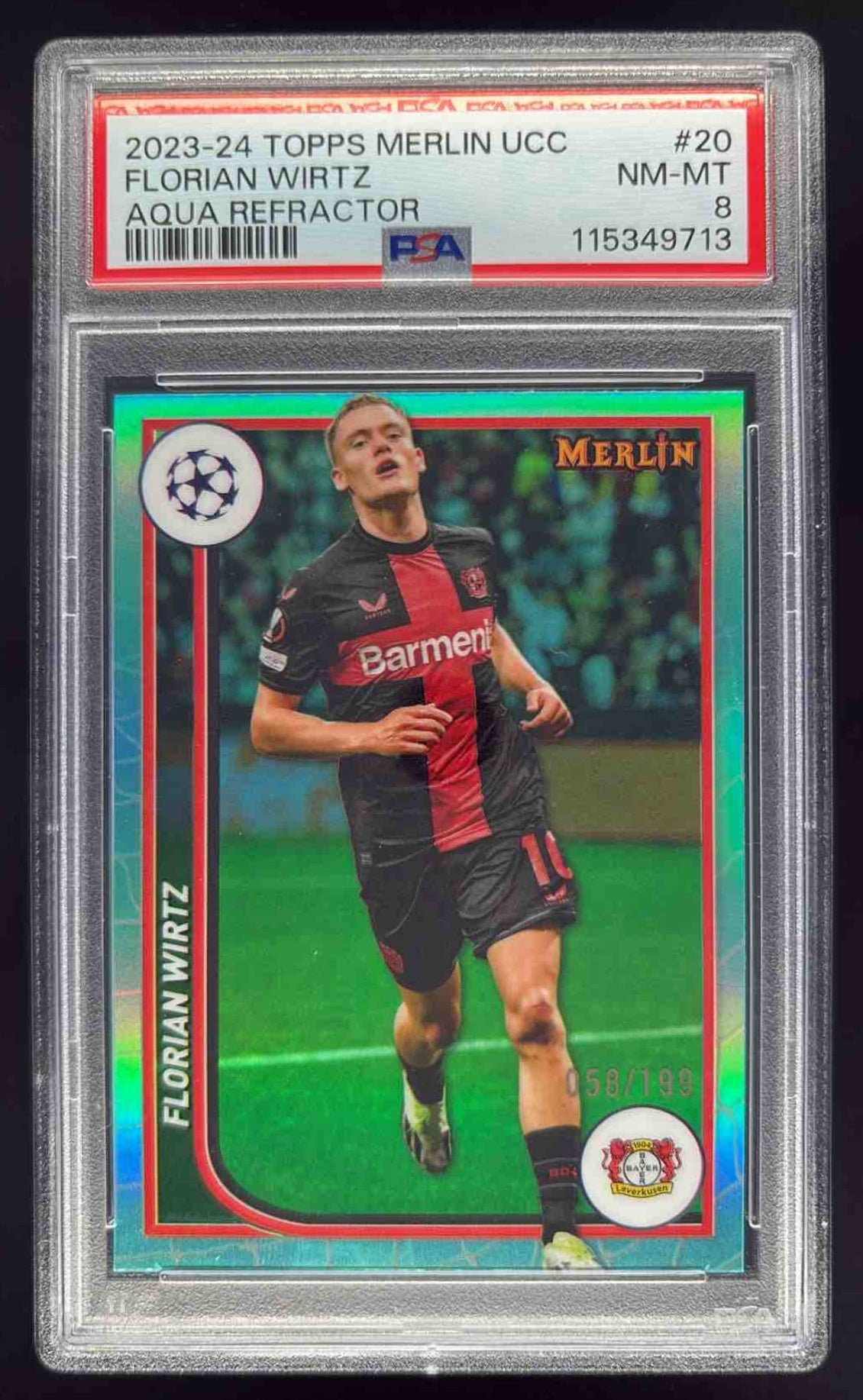 2023-24 Topps Chrome Merlin Club Competitions Aqua #20 Florian Wirtz /199 PSA 8