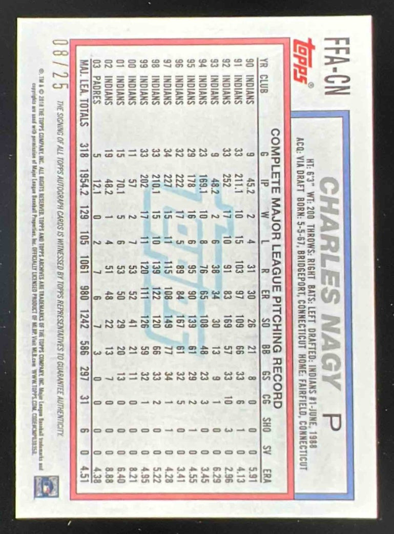 2018 Topps Archives Fan Favorites Blue #FFA-CN Charles Nagy Autograph Auto /25