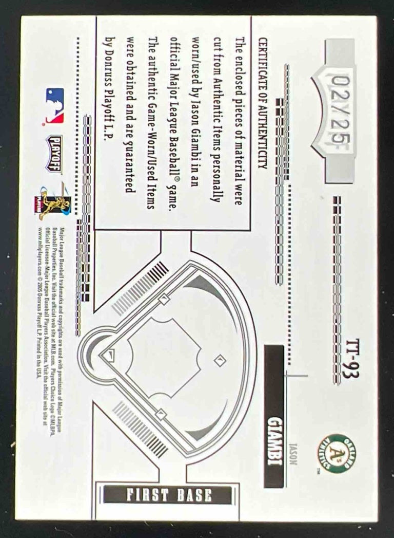 2005 Absolute Memorabilia Tools of the Trade Swatch Triple #93 Jason Giambi /25