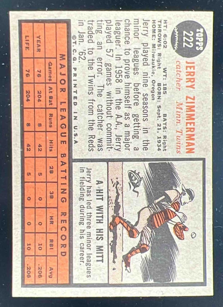 1962 Topps #222 Jerry Zimmerman