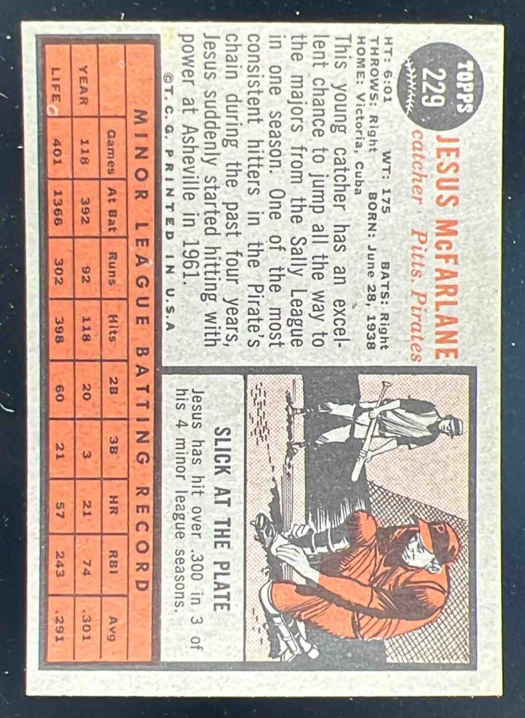 1962 Topps #229 Jesus McFarlane RC
