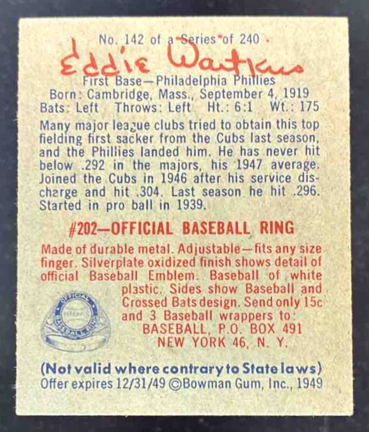 1949 Bowman #142 Eddie Waitkus RC