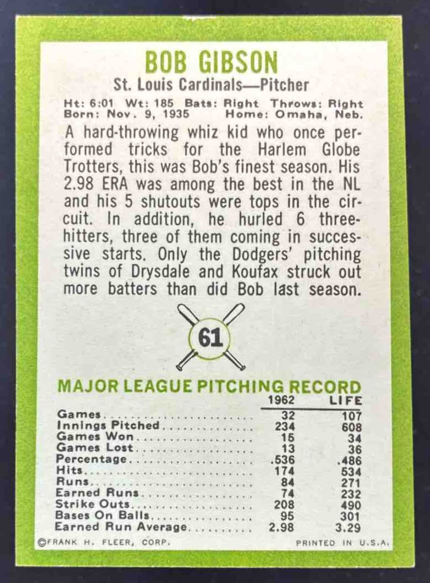 1963 Fleer #61 Bob Gibson