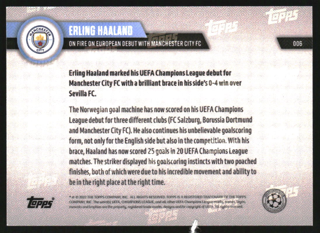 2022-23 Topps Now UEFA Champions League #6 Erling Haaland