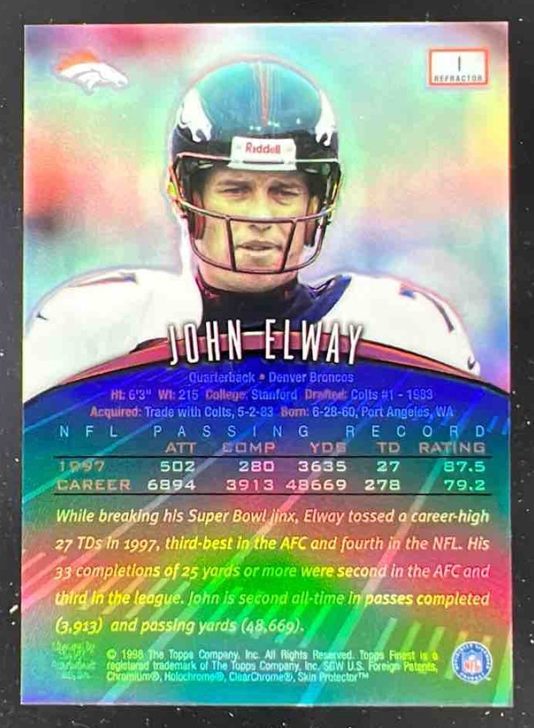 1998 Topps Finest No Protectors Refractors #1 John Elway