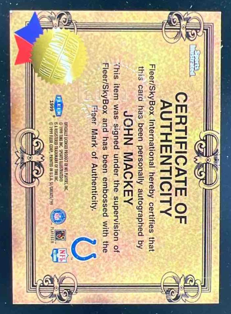 1999 Fleer Sports Illustrated Autographs #NNO John Mackey Auto