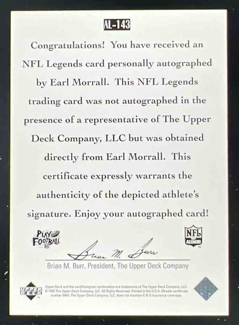 1997 Upper Deck Legends Autographs #AL-143 Earl Morrall Auto
