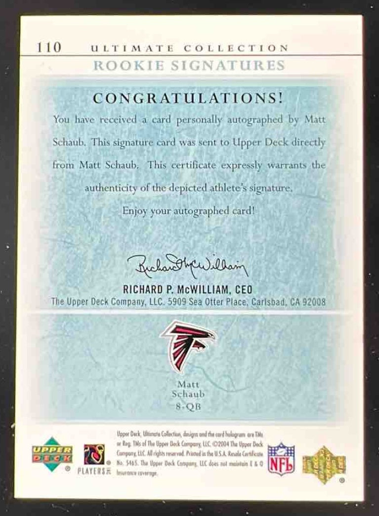 2004 Upper Deck Ultimate Collection #110 Matt Schaub Autograph RC Auto /250