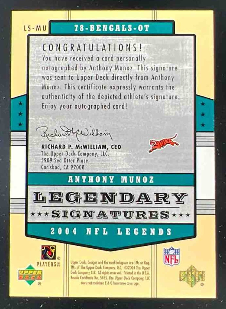 2004 Upper Deck Legends Legendary Signatures #LS-MU Anthony Munoz Auto
