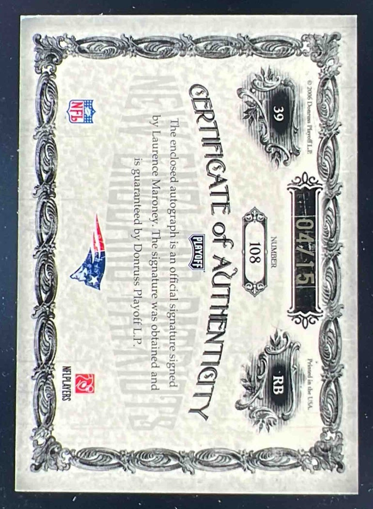 2006 National Treasures Rookie Gold #108 Laurence Maroney Auto /15