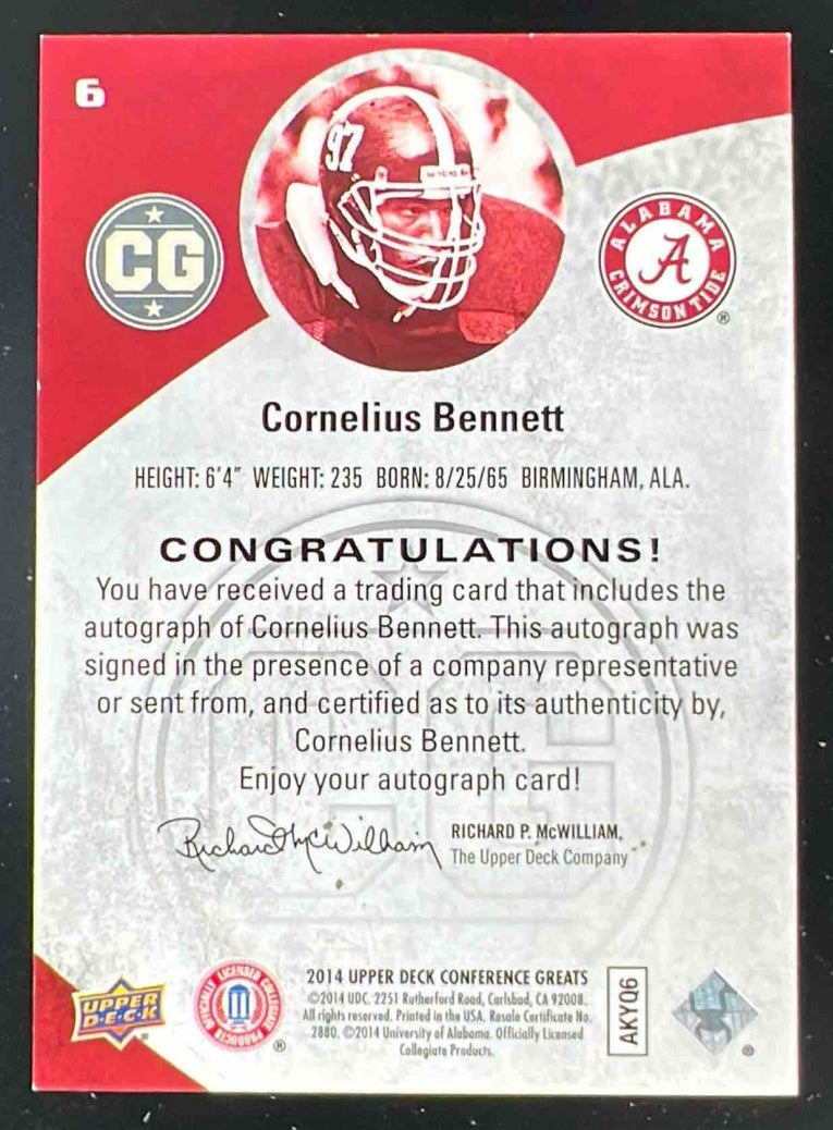 2014 Upper Deck Conference Greats Autographs #6 Cornelius Bennett Auto
