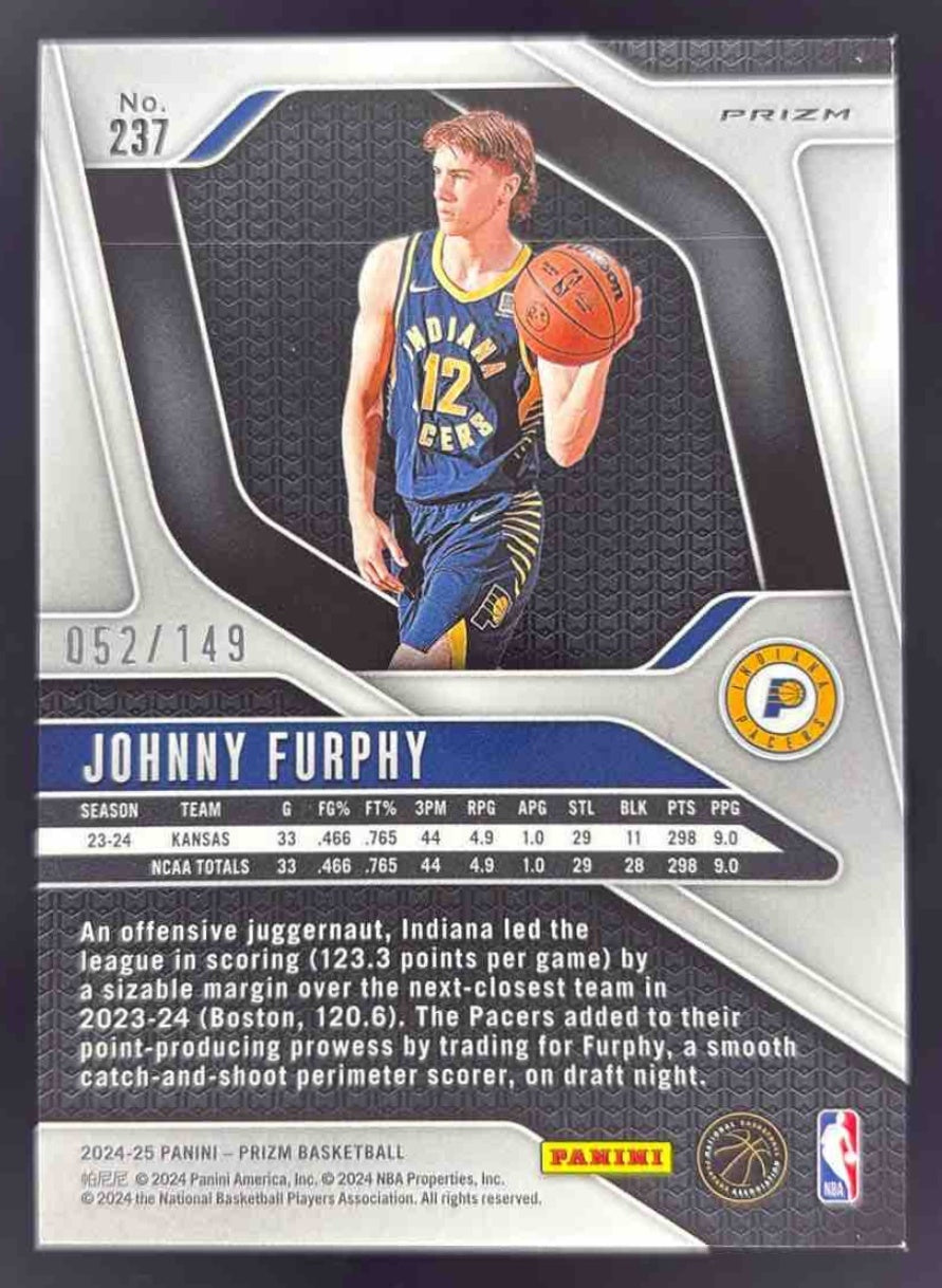 2024-25 Panini Prizm Purple Ice Prizm #237 Johnny Furphy RC /149
