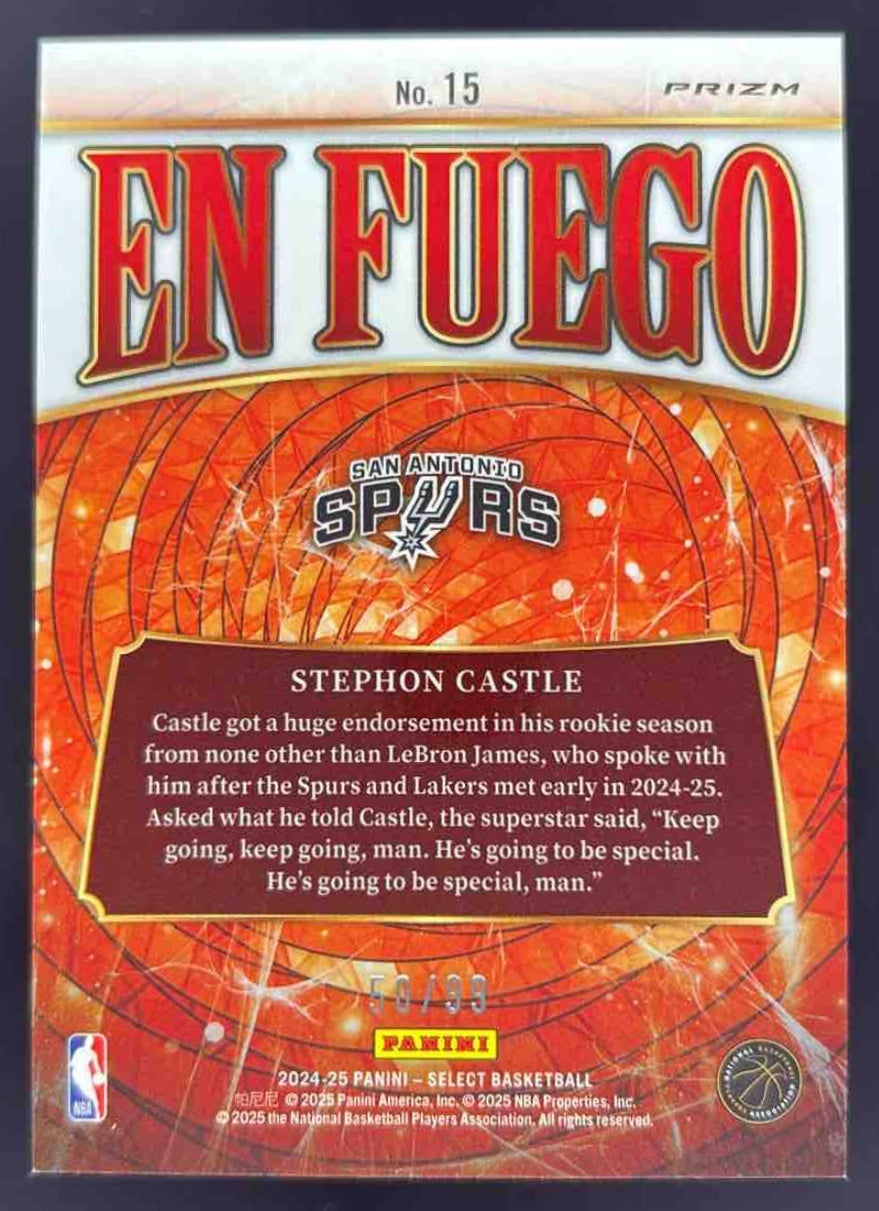 2024-25 Panini Select En Fuego Red Prizm #15 Stephon Castle RC /99