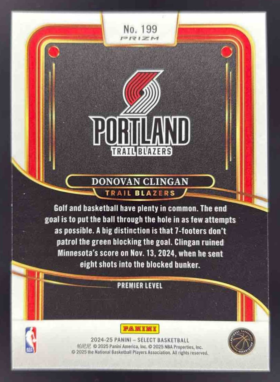 2024-25 Panini Select Premier Zebra Prizm #199 Donovan Clingan RC